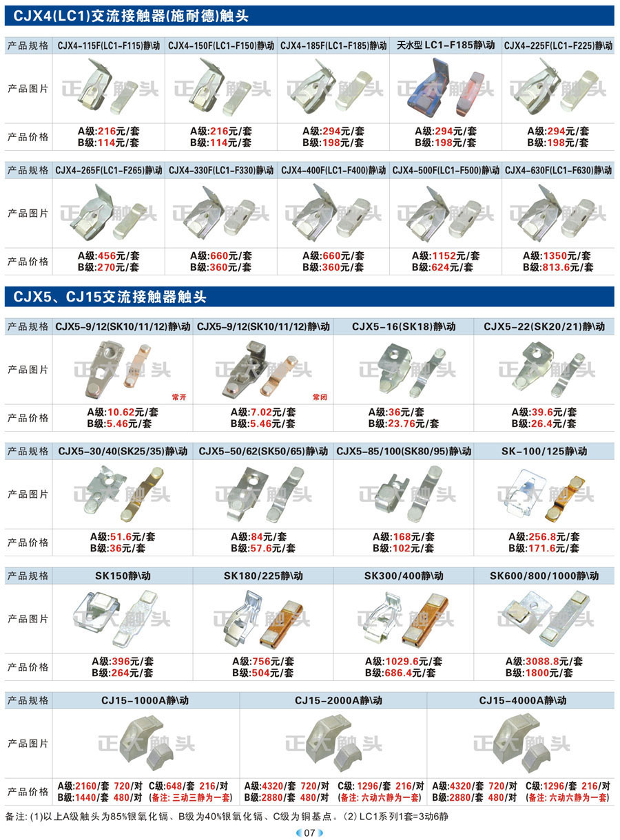 B交流、AF、EH(EK)、(ABB)交流接触器触头