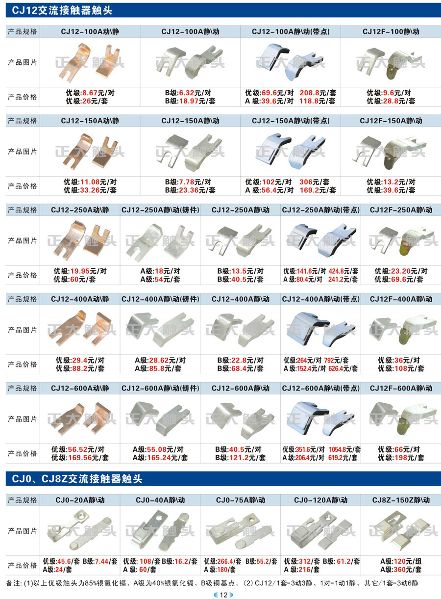 CJ40、CJ10、CJ1、CJ3、JT3触头
