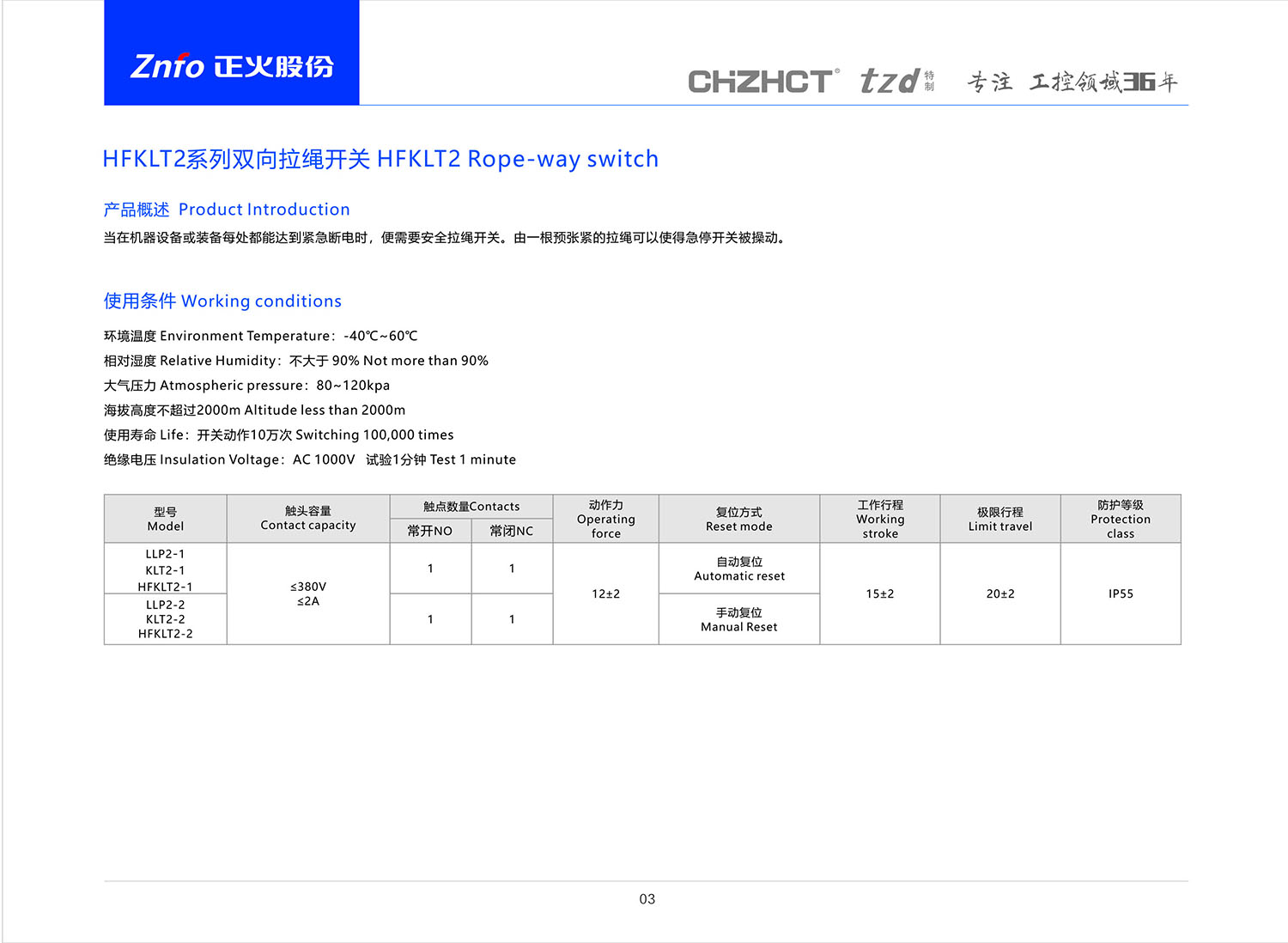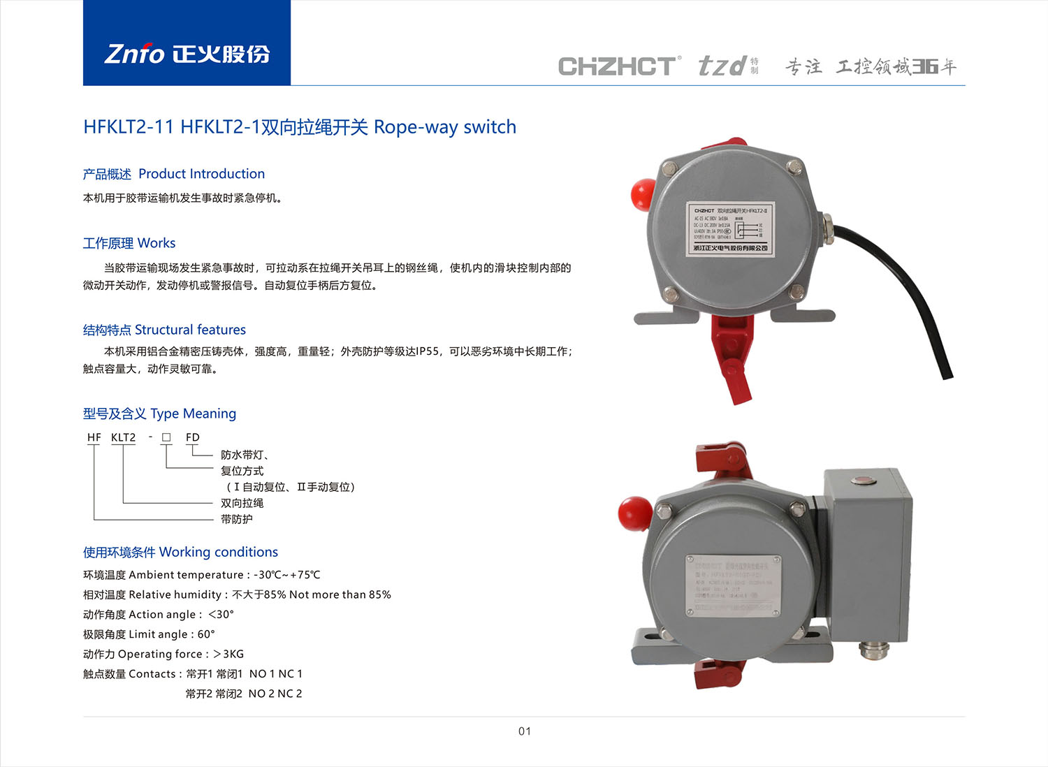 HFKLT2双向拉绳开关 _拉绳开关_行程/微动/跑偏/拉绳/超速_工业控制与保护_产品中心_永乐高电气股份有限公司