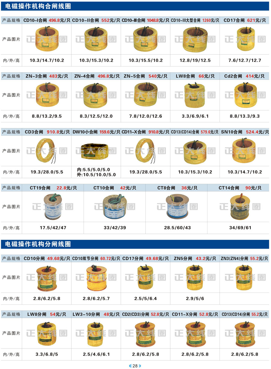 电磁操作机构合闸线圈、电磁操作机构分闸线圈