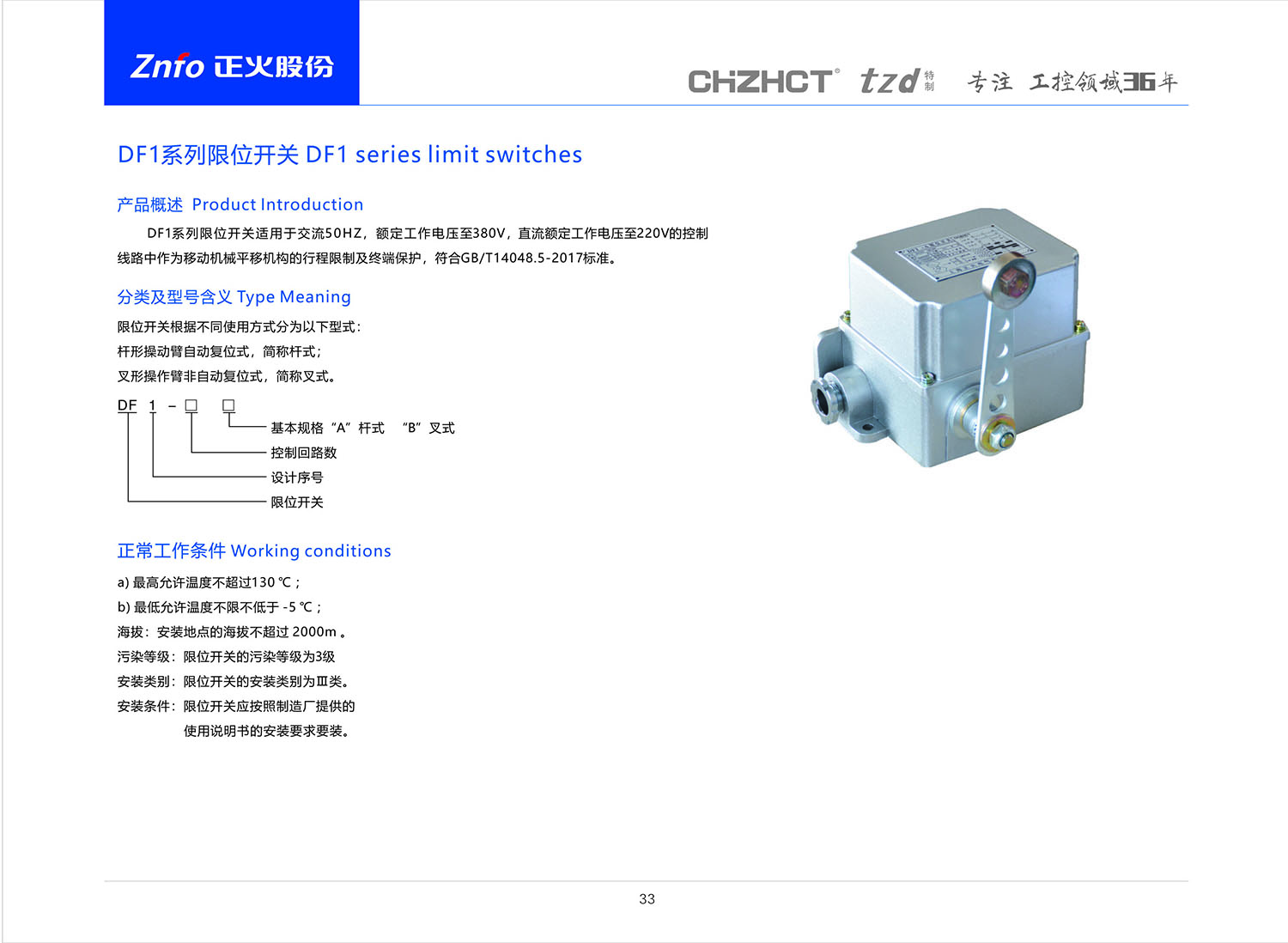 DF1系列限位开关产品说明书