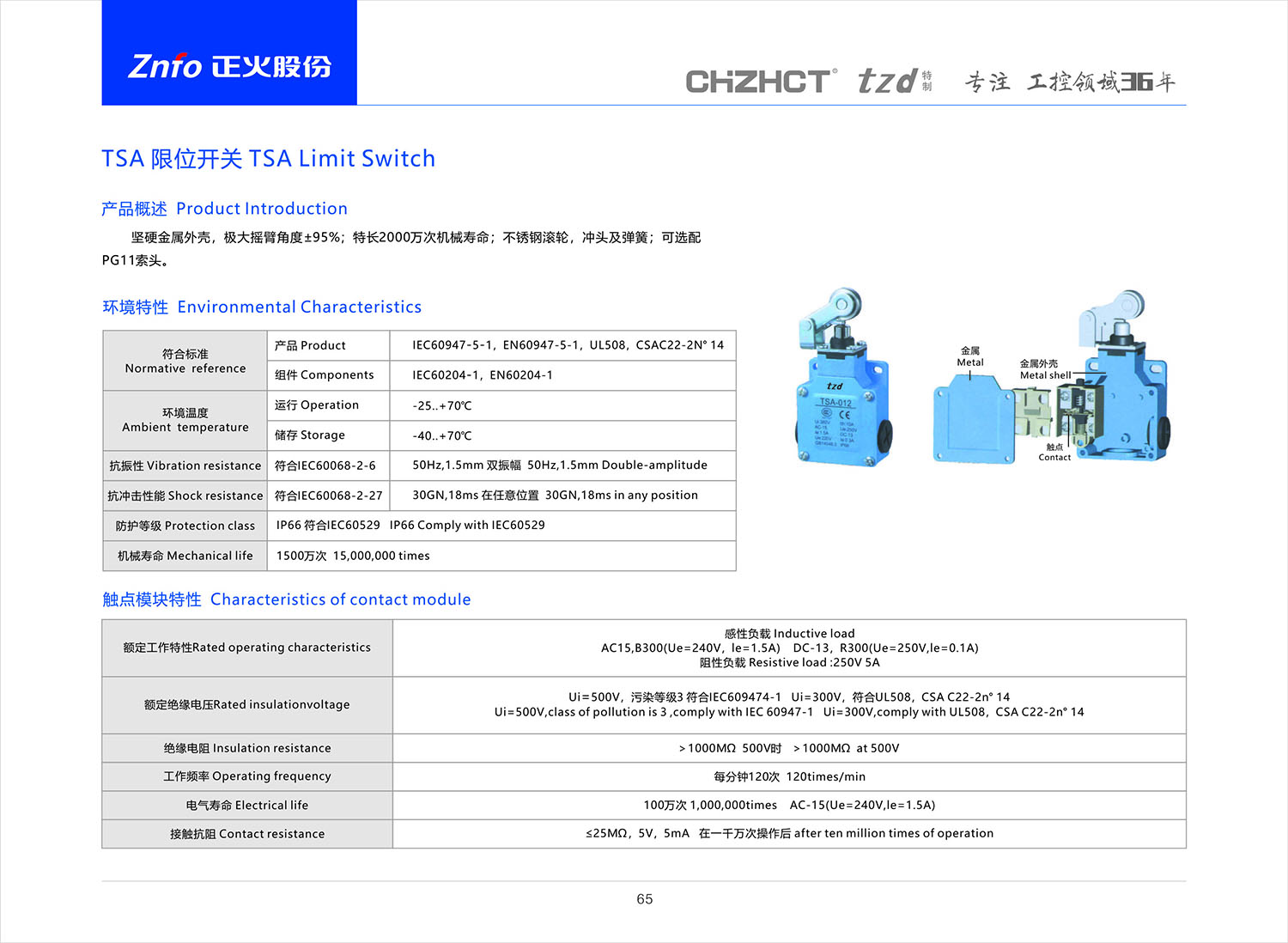 TSA 限位开关 产品说明书