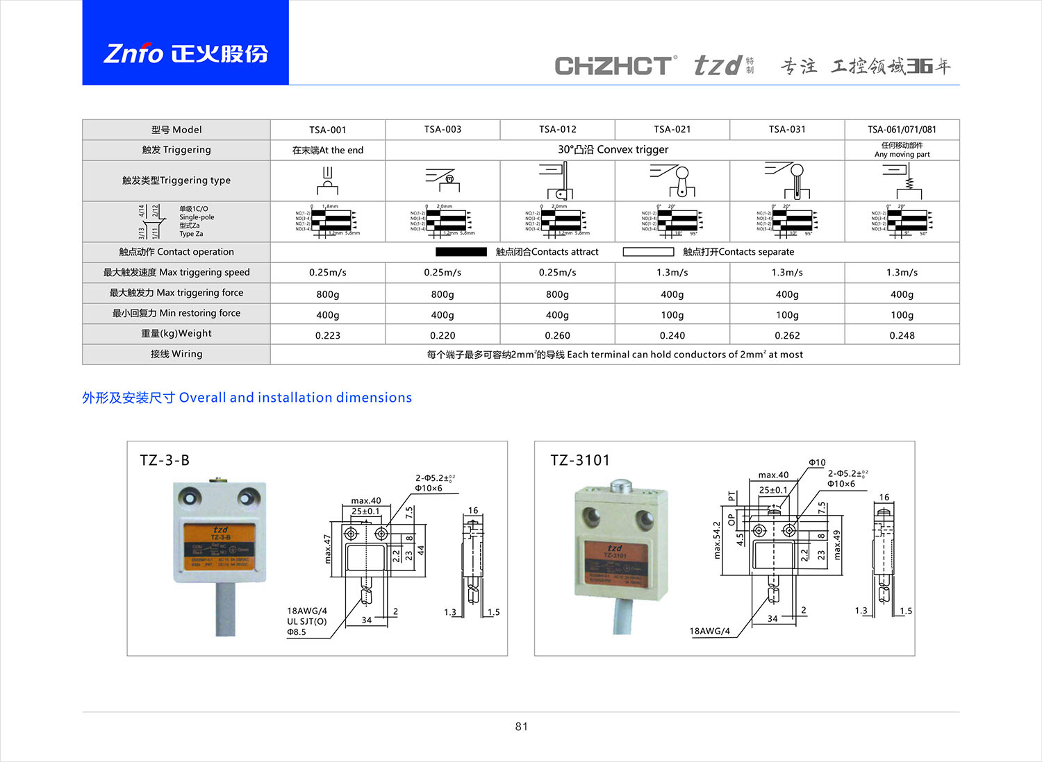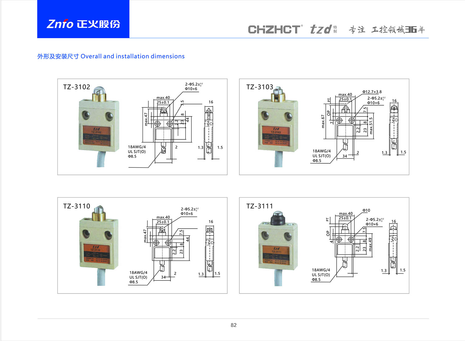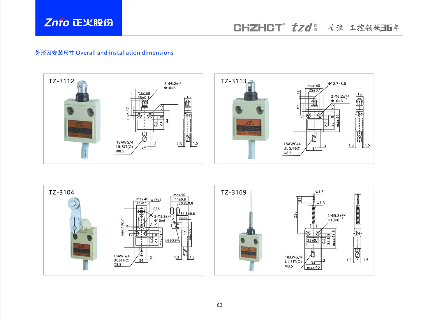 TZ-3 防水限位开关_行程/限位开关_行程/微动/跑偏/拉绳/超速_工业控制与保护_产品中心_永乐高电气股份有限公司