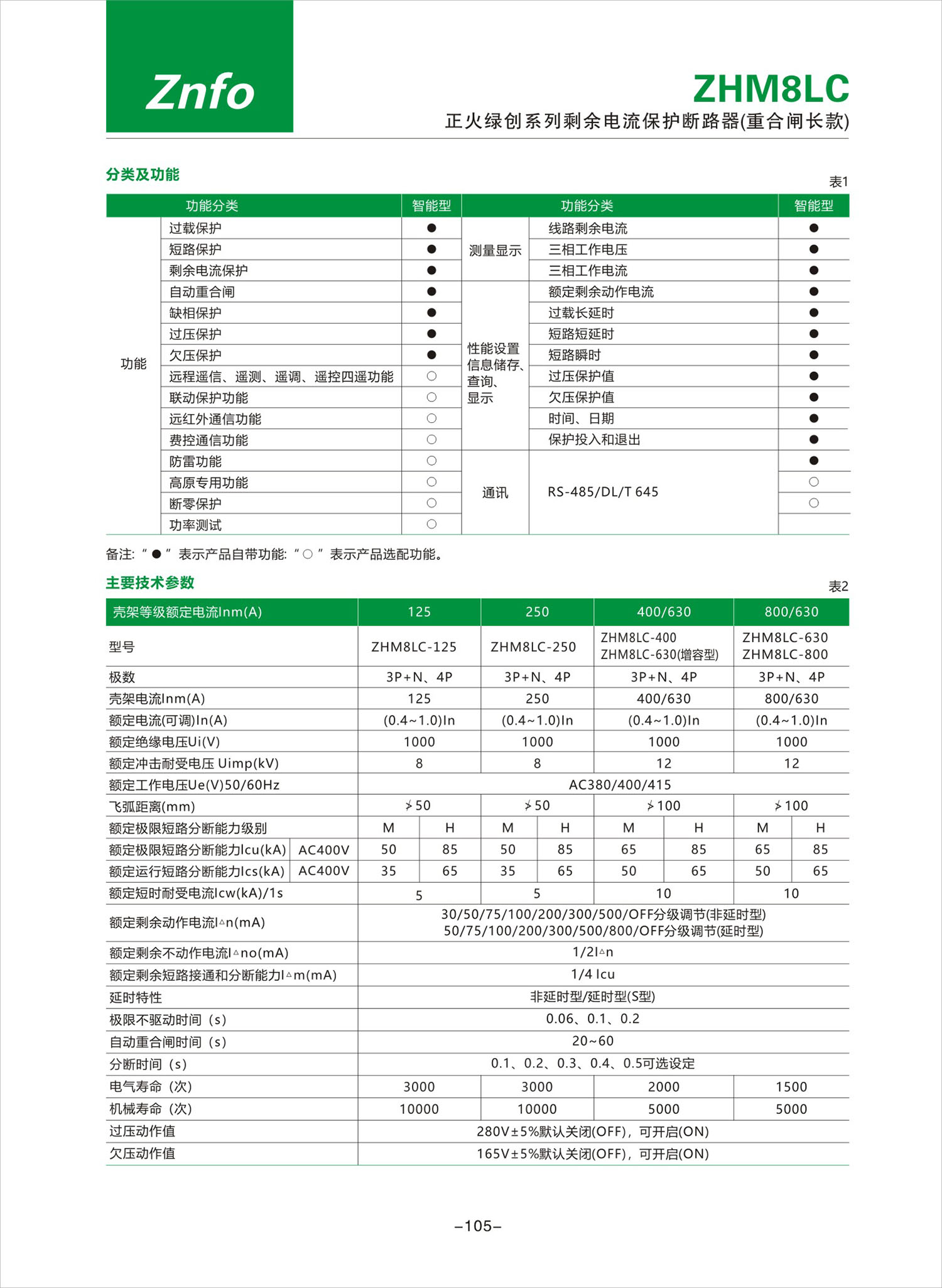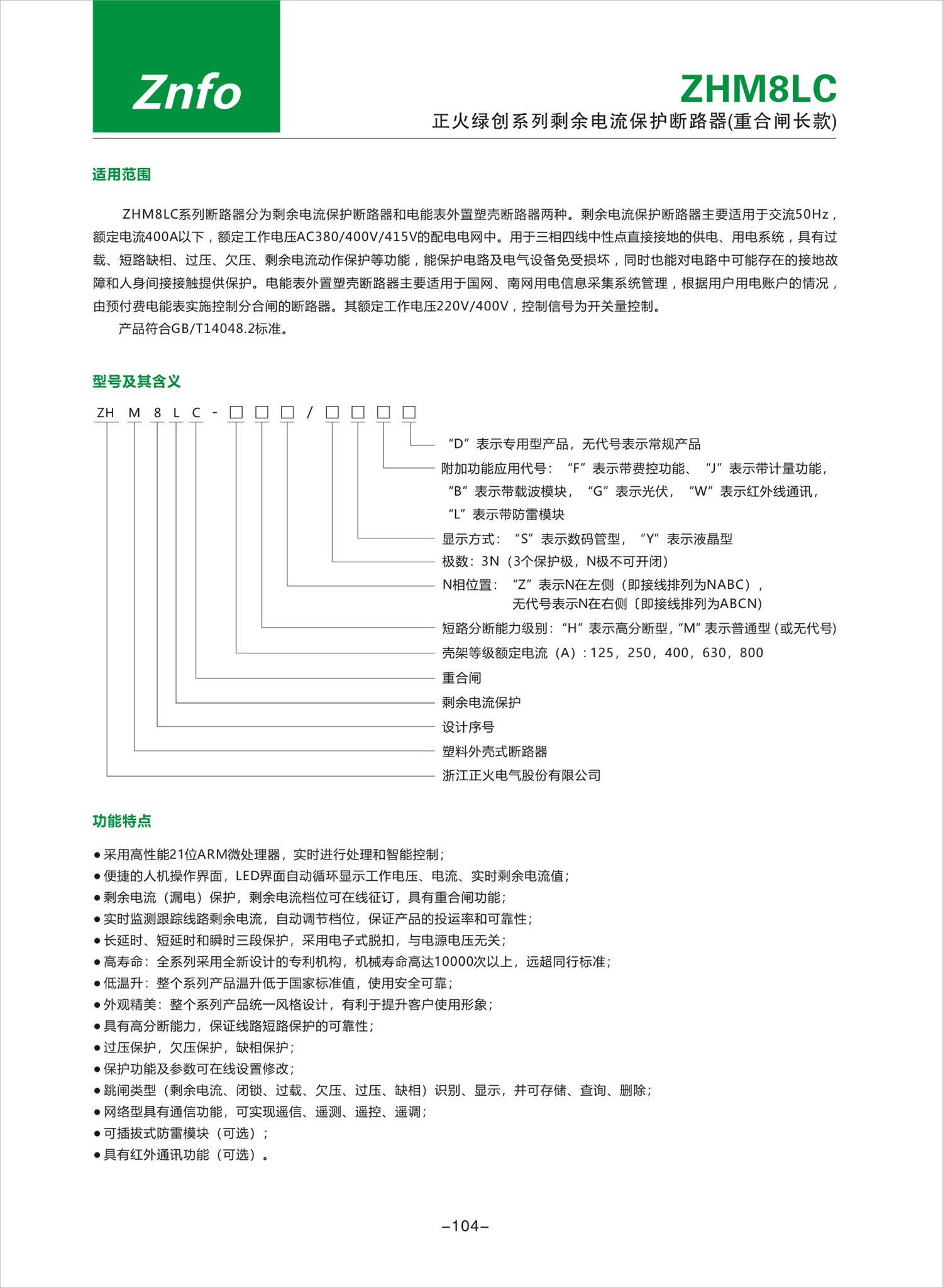 ZHM8LC系列剩余电流保护断路器(重合闸长款)_正火绿创系列_新品推荐_产品中心_永乐高电气股份有限公司